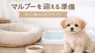 マルプーや犬を初めて飼う予定の方へ向けて、お迎えする前の心構えや準備、迎えてから一週間の過ごし方、それ以降にかかる費用についてまとめています。